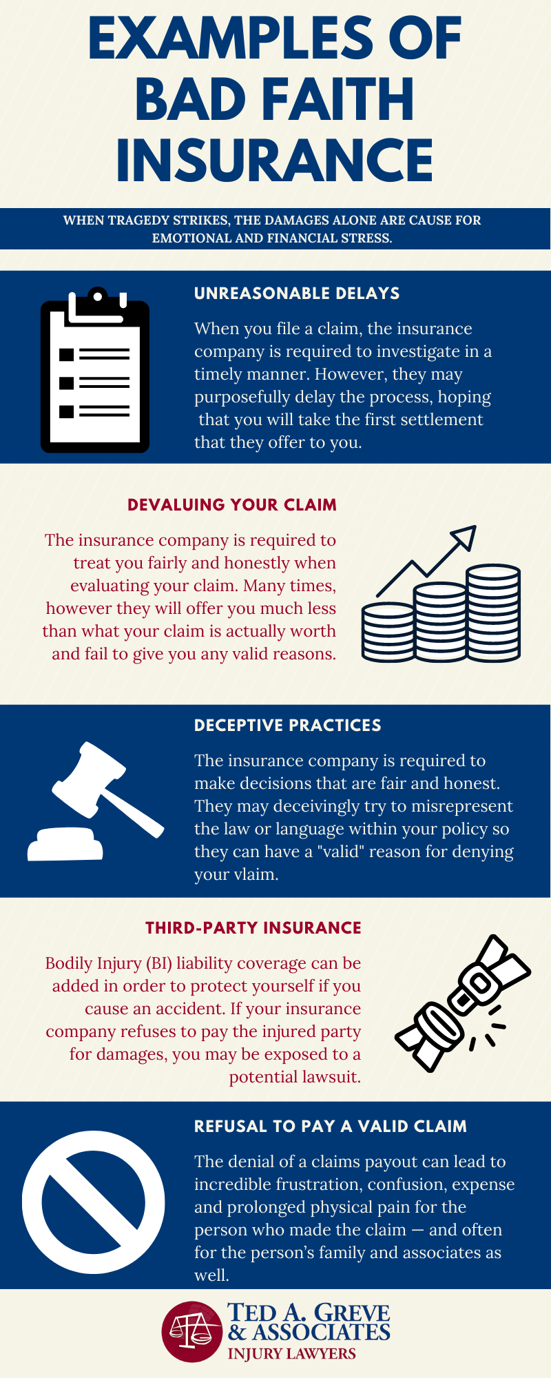 If you have decided that bad faith is at play here, then you will need the backing of an experienced injury law firm. Let Ted A. Greve & Associates be your legal representatives in protecting your interests. Contact us today and lets us review your case at no cost to you.